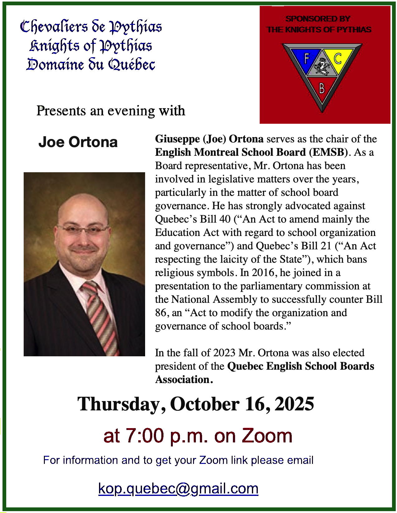 After four year "in issolation", we were proud to welcome Elisabeth Prass, MNA for D'Arcy McGee and Anthony Housefather, MP for Mount Royal speaking to us, live and in person on Thursday, April 25, 2024 |
